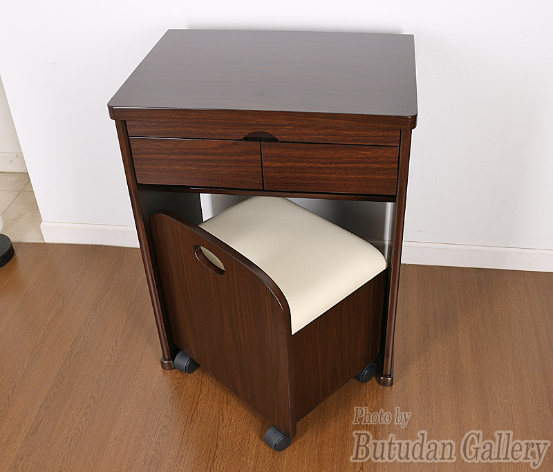 | ○スライド収納天板 ○引出し付き ○キャスター付き収納スペース椅子 ○創価学会会員様向けの仏壇の置き台 |