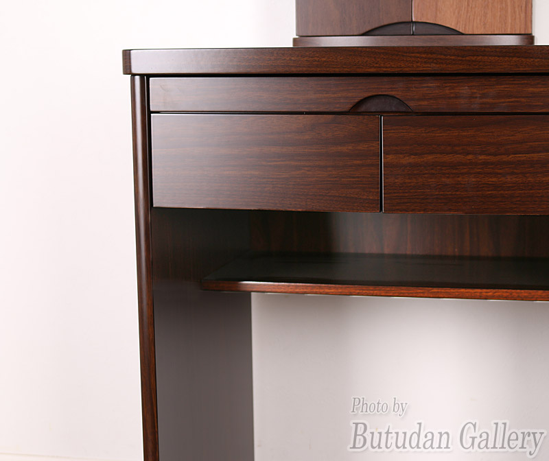 | ○木目のシートを高級タイプに変更し、更にポリ仕上げを施し傷が付き難く、水濡れにも強くなりました。 ○便利で使い易い引き出しが2箇所、仏具を置くのにうれしいワイドな天板引出しも。 ○椅子の座面の下には深さがあり収納力もたっぷりな大容量スペース。 ○リニューアルの最大の目玉、椅子にキャスターを取り付けました。 従来品では出来なかった片手で楽に動かす事が出来ます。また、重量型の丈夫なキャスターです。 |