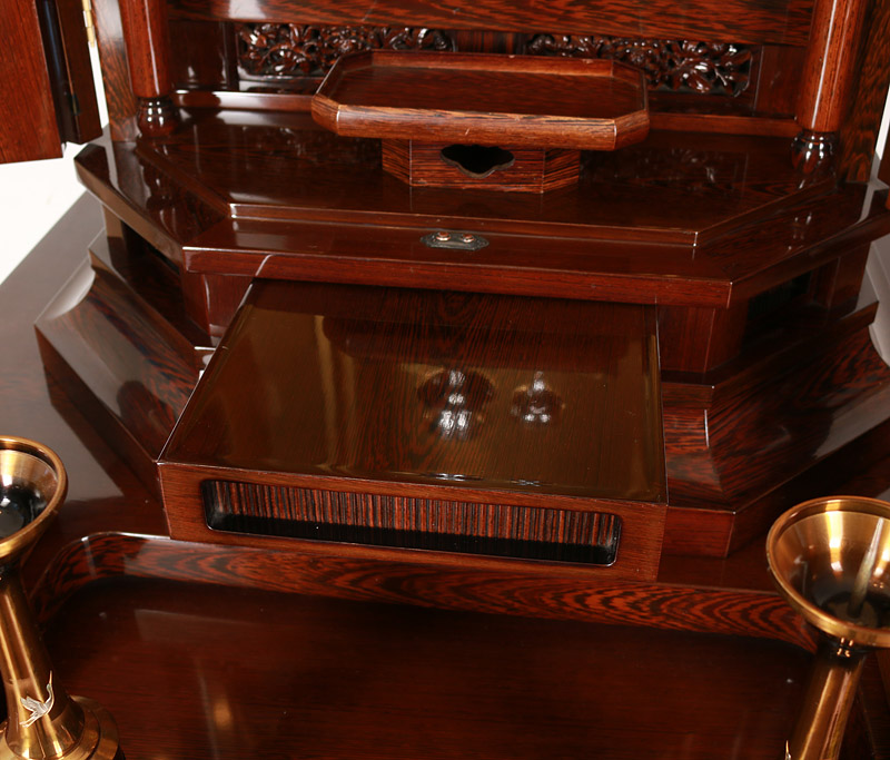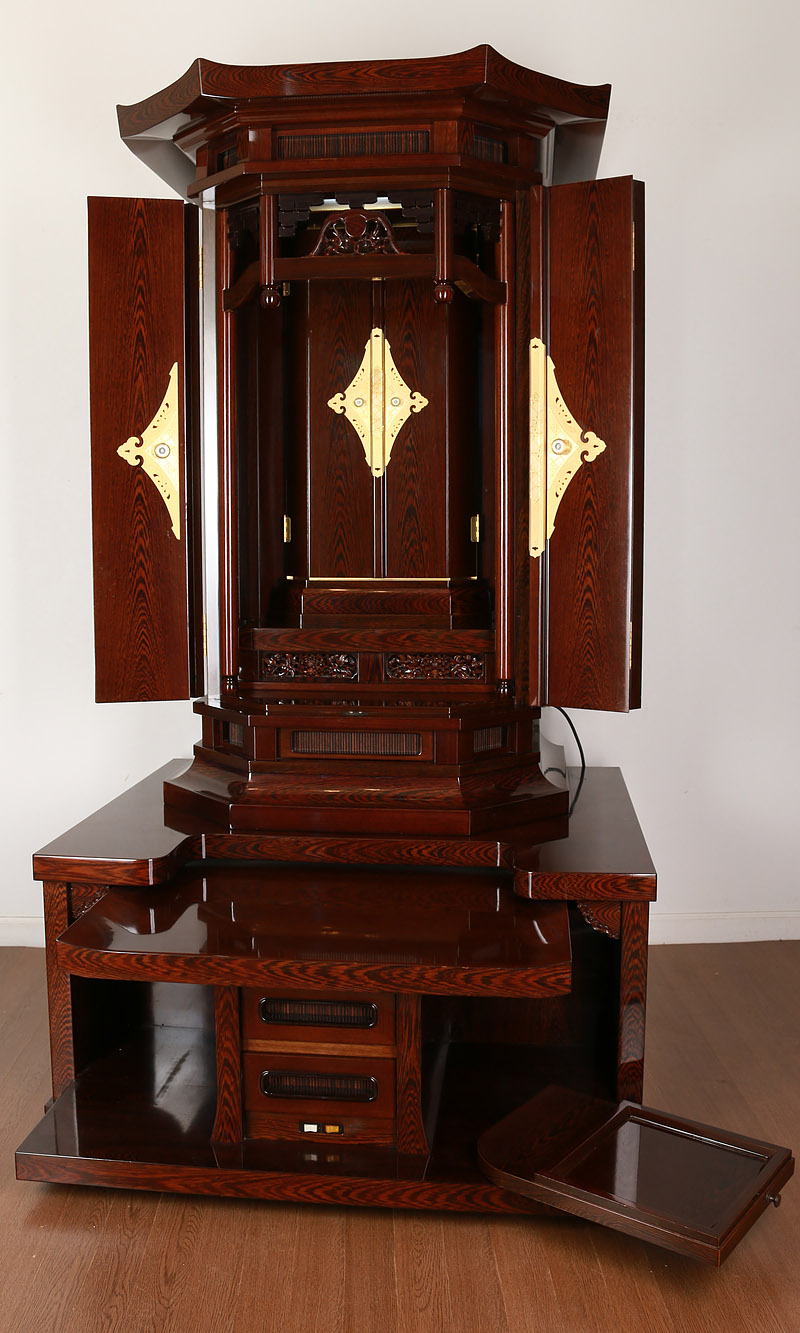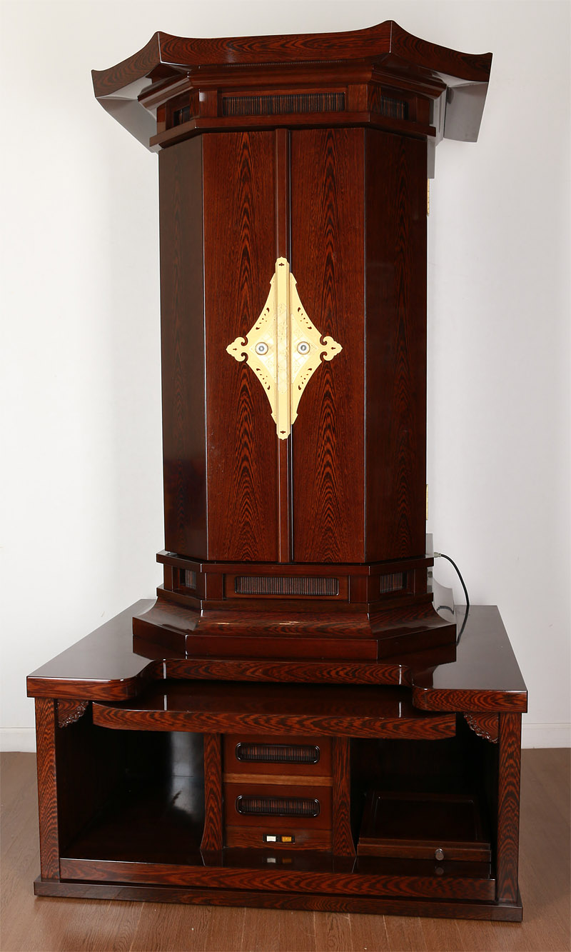 | ○電動式スライドオープン二重厨子扉 ○内部照明 ○創価学会会員様向けの商品 ○特装(特別御形木)御本尊様対応厨子 |